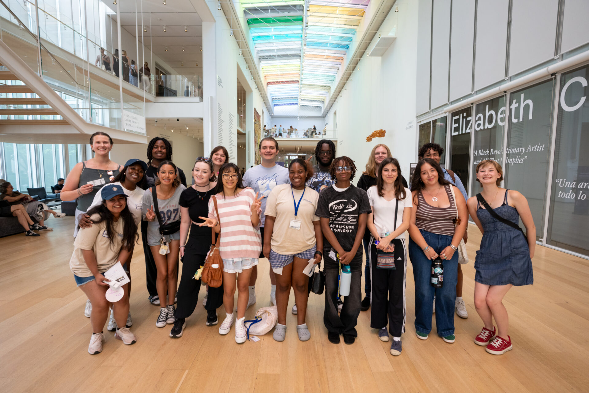 students in front of a large mural in Pilsen